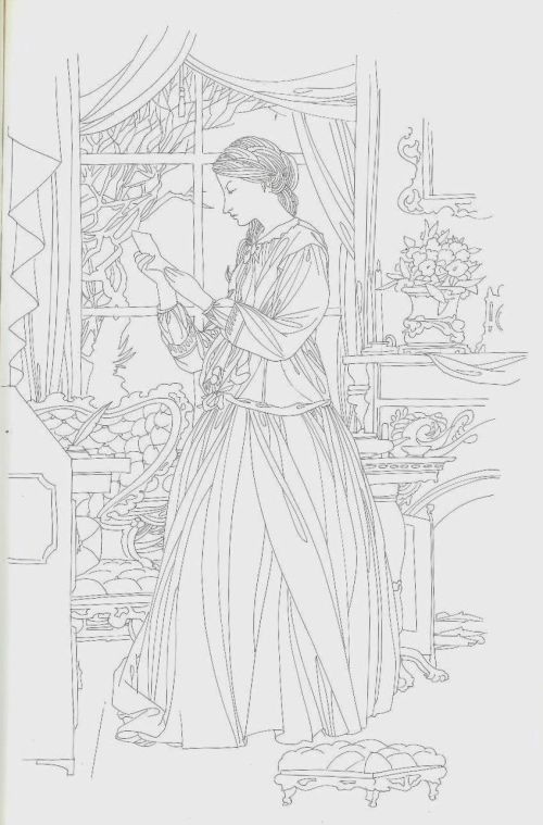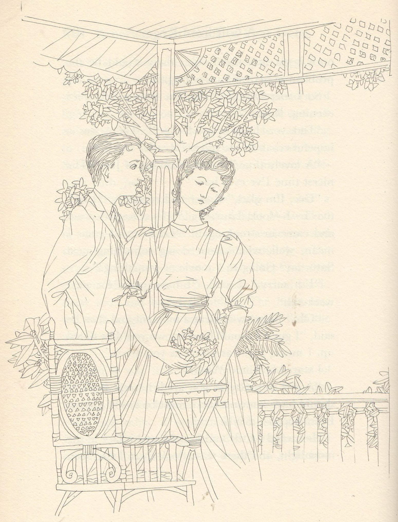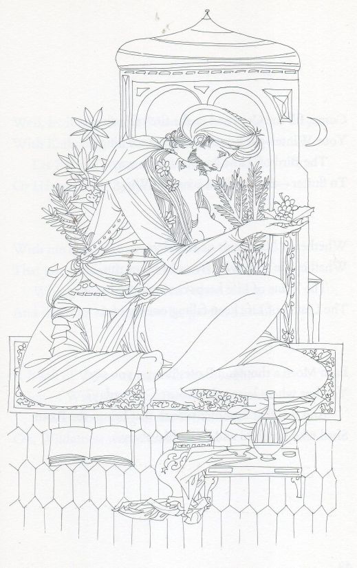 Following his Rubaiyat, in 1966 Karlin illustrated Harriet Eager Davis’s historical novel Elmira (subtitled “The Girl who loved Edgar Allan Poe”), published by Houghton Mifflin Co. of Boston. Fig.5 is a good example. It illustrates chapter 13 (p.107) and shows Elmira reading a letter from Poe concealed from her by her parents and husband.