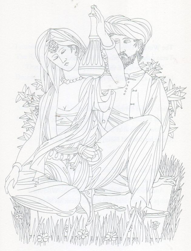 I did ask Karlin’s daughters about whether The Rubaiyat held any particular significance for their father, and if they knew anything about how he came to illustrate it. Unfortunately they knew little, but they believed that he only became interested in The Rubaiyat after he had been commissioned to design the cover and illustrate it. (The cover design doubled up as the illustration on p.51.)