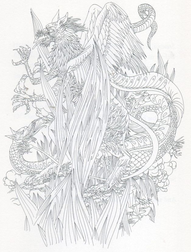 Note 2c: I wondered if this could be based on Chinese dragon–lore, but in Chinese art the dragons generally fight over a flaming pearl, signifying wisdom, power or immortality amongst other things, and there is no pearl in Karlin’s illustration. Chinese dragons can come with or without wings, depending on their intended symbolism.