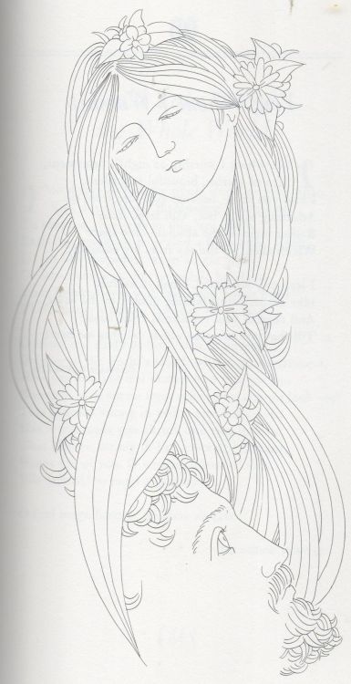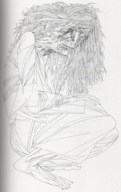 Karlin’s illustrations are all the more remarkable because he does no preliminary sketching, no blocking out, no roughs or comps. He merely takes a clean sheet of paper and begins to draw what he sees in his mind, having first steeped himself in the action of the text. If the resultant drawing does not please him, he discards it and begins the whole scene once more. He may execute many drawings of the same scene, varying each only slightly – the angle of a head, the detail of a hand — until he is esthetically pleased. (p.73)