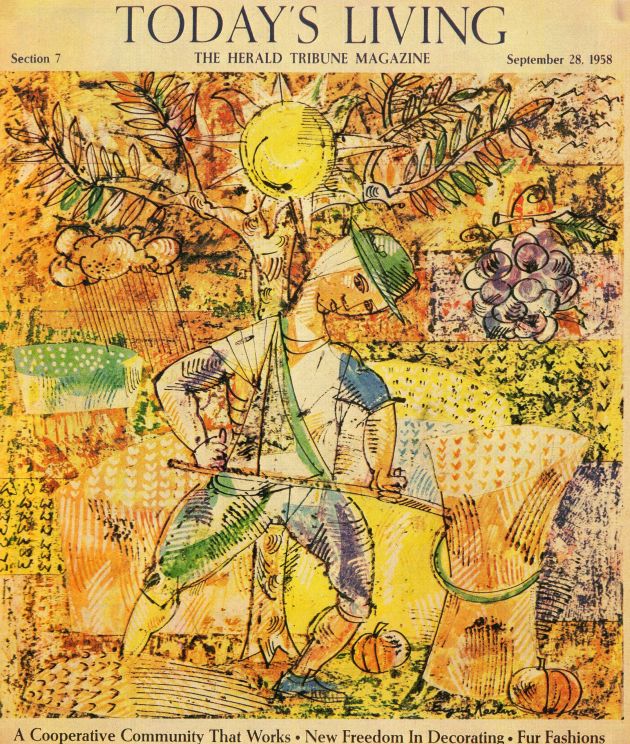 The Chicago Tribune on 14 March 1940 (p.17), in a column headed “Open Chicago Artist Show at Institute Today,” noted that, “The Clyde M. Carr prize of $100 went to ‘Landscape’ by Eugene Karlin.” In 1946, at the annual show of the Art Institute of Chicago, he was awarded the Flora Mayer Witkowsky prize of $100 for his painting “Man with a Flute” (The Plain Dealer, Cleveland, Ohio, 5 June 1946, p.4.) Numerous other prizes and awards were to follow. He gained Awards for Excellence from the Society of Illustrators in 1959, 1962, 1963 (as noted earlier) and 1964, for example, the Herald Tribune Children’s Book Award in 1961, and the Society of Publication Designers Annual Award in 1971.