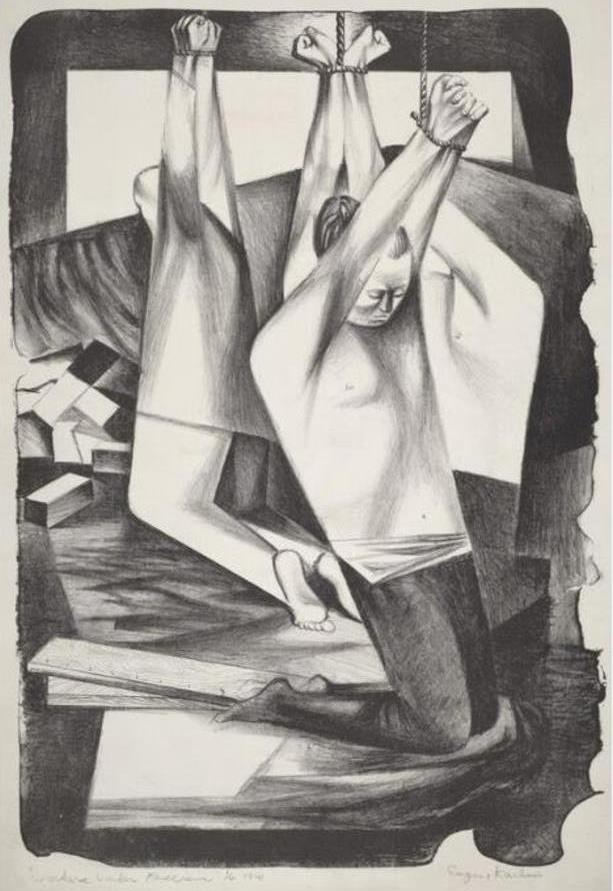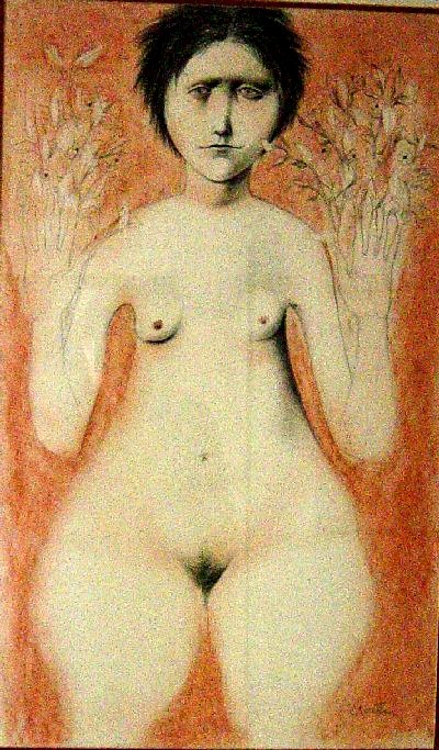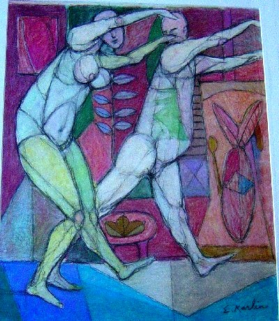 Unfortunately, aside from the paintings of José Clemente Orozco and the use of line by Michelangelo, Michel does not name any artists who particularly influenced Karlin, so let us take a look at some of his art work and see where that leads us (for sources, see note 6.)